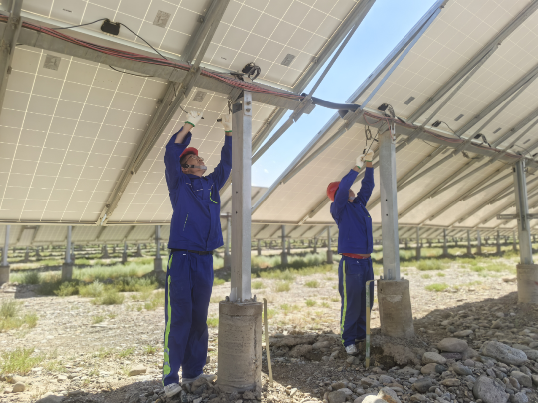 太阳能射阳电站运维人员正在进行组件排查工作 华中区域公司通过技术创新,全力做好迎峰度夏电力保供。所属监利电站、万年电站应用无人机巡检技术,开展输电外线隐患排查、故障支路修复及全线路防鸟刺安装,使停电事故率降低50%以上,减少发电损失70万千瓦时;贵溪电站完成39台逆变器遮阳棚升级改造,预计全年增发电量31万千瓦时、增收30万元。 精管控降成本 细节挖潜见实效 新疆区域公司对设备采购、施工建设全链条进行精细化管控,实行24小时轮班作业,在严守安全质量底线前提下抢抓工期。康平项目、抚顺项目、三友项目于4月30日前顺利并网,其中三友项目从开工至并网仅用39天,预计新增营业收入670万元;第十二师产业园区低碳转型50万千瓦光伏项目正在有序建设中,为公司效益增长再添动能。