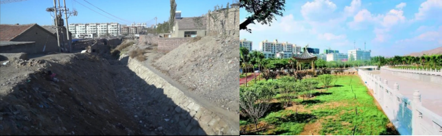 左1十五里河流域综合治理项目分布图 右1十五里河流域治理后