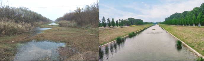 左1界首城区黑臭水体治理前 右1界首城区黑臭水体治理后