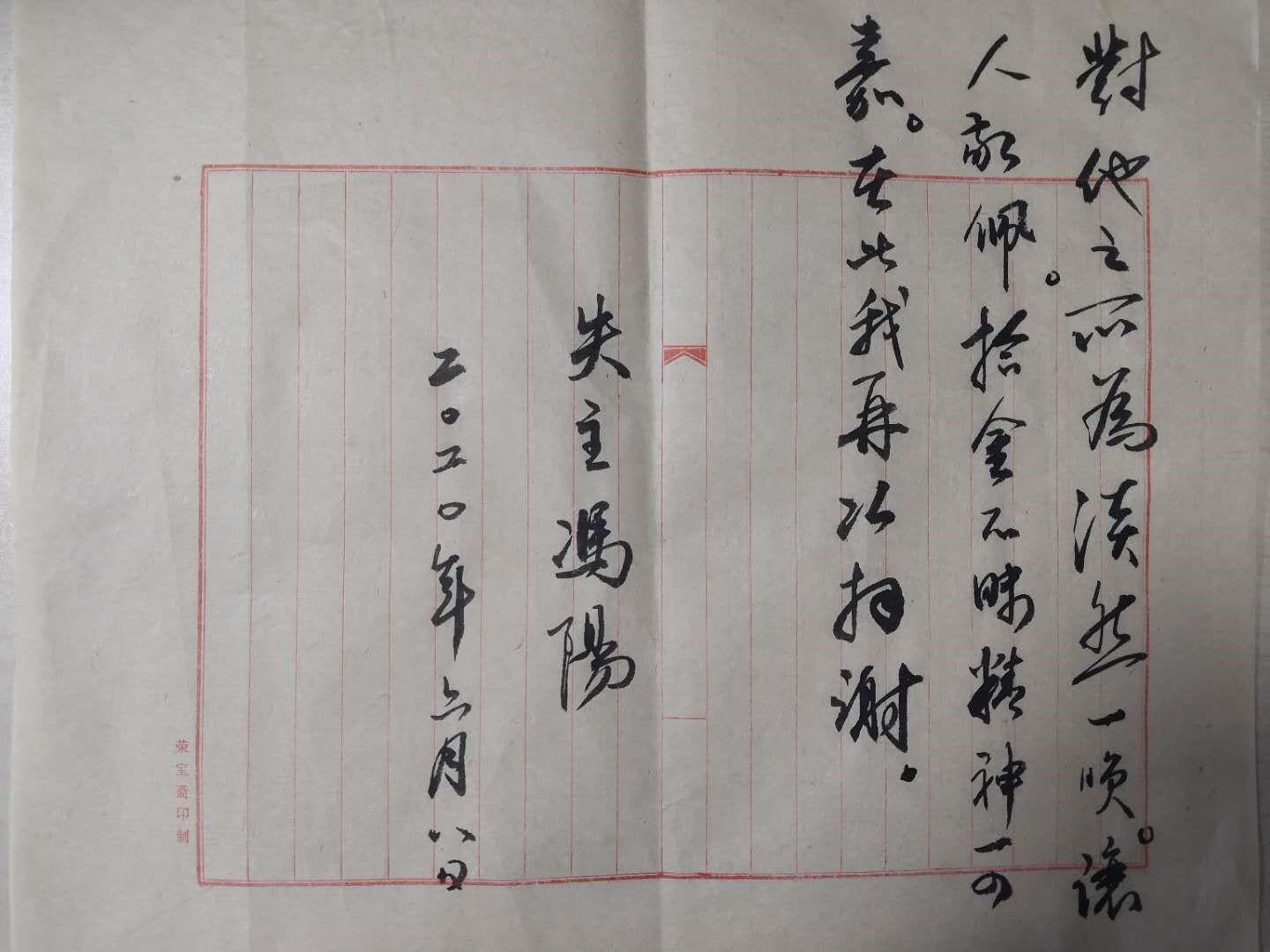 6月11日,集团公司收到一封失主冯阳亲笔手写的感谢信。字里行间由衷地表达了对我公司员工徐海东拾到他的卡包后物归原主、拾金不昧品德的称赞与感谢。徐海东是中节能资产经营有限公司审计部员工,现在集团审计部借调。感谢信内容如下: 感 谢 信 我是一名退休老人,今年已经六十四岁了。在今年的六月七日星期天上午,本人不慎将卡包遗失在文慧桥南附近。卡包内有两张银行卡、医保卡、身份证和门禁卡等物。发现小包丢失后,四处查找不见,焦急之况可想而知。在万般无奈之际,一个陌生电话进来。告诉我卡包捡到了,真是喜从天降。打电话的人就是您单位的徐海东同志。他捡到卡包,找到包内的名片。第一时间通知我,见到他拿到包后,他不计报酬。反复追问才只告诉我他的名字,在中国节能工作,对他的所为淡然一笑。 让人敬佩!拾金不昧精神可嘉!在此我再次感谢! 失主:冯阳 二零二零年六月八日