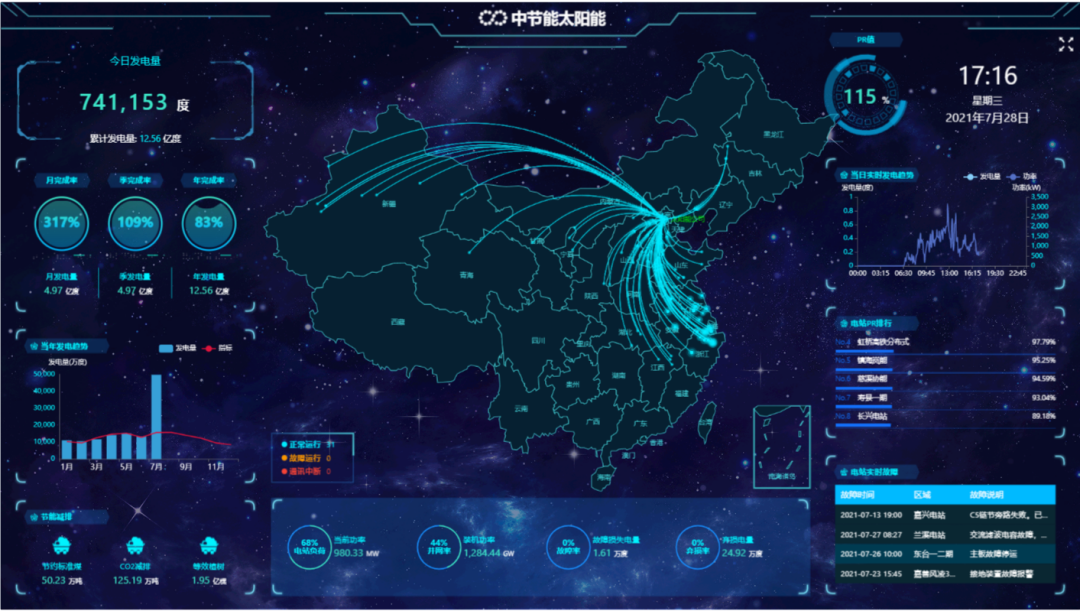 针对分布式电站,“节能云平台”可集中调度若干个相邻电站,通过云平台实时监测每个分布式电站的运营情况,一旦发生突发问题,随时调度附近运维人员及时处理。这对电站人员配置、资源调度都是一大优化。