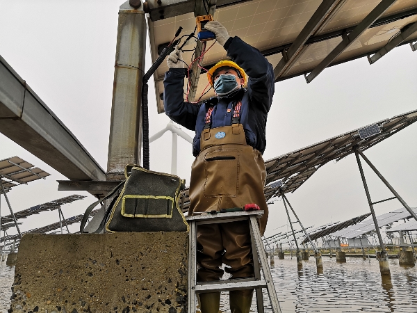 太阳能华东区东台电站坐落于黄海之滨,三十五万块太阳能电池板占据了这两千六百亩的海面,彷如海岸边的“书页”,记录着这座电站的事和人。而它们的“第一页”记载着一名叫做刘加勇的汉子。 2011年,东台电站成立之初,国家要求电站一期二期项目年底完成并网,如果不及时完成那么公司将会因电价补贴减少损失两千多万,而距离这最后期限只剩三个月。时任东台电站运行部值班长的刘加勇充分发扬党员精神,“临危请命”,首先协助团队办理各类手续资料,保证电站手续的不出差错,之后电站进入消缺阶段,小至太阳板的螺丝加装平垫和弹垫,大至箱变高压侧绝缘加强解决放电事故,他都能以较好的专业知识在现场给予指导,配合总包方提前完成了消缺工作。茫茫的海面上,无数太阳能板在烈日下映射着刘加勇面朝海水背浸湿的身影,抬头是密密麻麻的“森林”,俯身是暴晒潮湿的水面。连续三个月刘加勇夜以继日地检查每一块发电板,保证每一个板块的正常运行,全力投入这场与时间的争夺战中,最终东台电站顺利在年底完成并网。