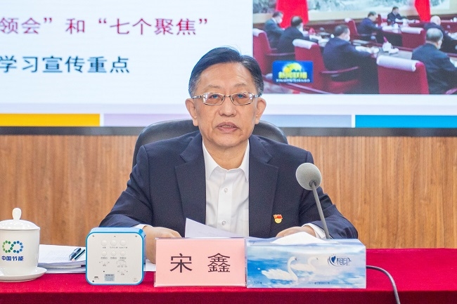 宋鑫指出,要全面准确学习领会党的二十大精神,深刻学习领会习近平总书记关于中国式现代化的重要论述,深入学习全国两会精神,牢牢把握新使命、新任务、新要求,按照党的二十大战略部署,认真落实政府工作报告中关于推动发展方式绿色转型等重要内容,深度参与蓝天、碧水、净土保卫战,持续推动重点领域节能降碳减污,继续在推进碳达峰碳中和、共抓长江大保护和坚持“山水林田湖草沙”一体化保护和系统治理等领域承担新使命、展现新作为。