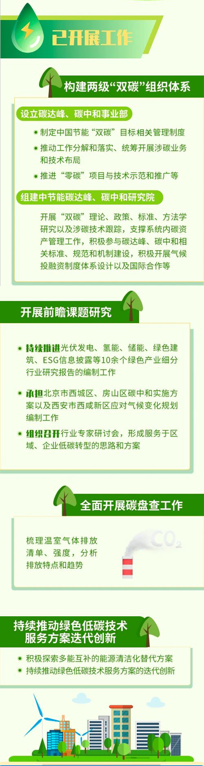 下一步,中国节能将不断提升推动国家“碳中和”目标实现的咨询规划和资源统筹能力,探索构建服务国家“碳中和”愿景的“零碳产业+负碳技术”双驱动布局,建立领先的“双碳”制度体系,着力加强“双碳”标准与智力供给能力。