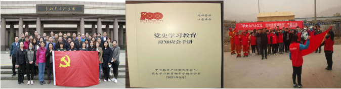 中国环保党委深入贯彻落实集团公司党委部署要求,组织各基层党组织积极做好再部署、再动员,采取多种形式,掀起学习热潮,高标准推进党史学习教育落实落地。一是把规定动作做实。下属栖霞公司党支部通过开展“四个一”系列活动,列明9项规定动作,推动党史学习教育走深走实。涞水公司党支部制定“一月一专题”学习计划表,将12个研讨专题逐月推进,沧州公司党支部开展每日一读、每周一课、每月一测的“1+1+1”党史学习教育;萍乡公司党支部采取“参观见学、领导带学、视频看学、网络助学、结队帮学”五学模式,抓好基层党员党史学习教育。二是把自选动作做活。保定公司党支部推出每周红色观影、“党史百年”诗词朗诵、红歌合唱等活动;山东公司党支部依托当地红色教育资源,组织开展实践教学活动,烟台公司和润达公司党支部联合开展“忆党史、铭党恩、促党建”跟着视频学党史活动;合肥公司党支部组织开展“学党史励初心 开奋斗新征程”党史知识竞赛,教育引导广大党员学透历史、学深思想、学出成效。三是把各环节工作做精。公司党委紧密结合方案要求,为领导班子成员和各基层党组织“量身定制”《党史学习教育工作任务落实卡》,以项目化、清单化、责任化的方式,既明确“规定动作”内容,又为“自选动作”指明方向。同时编印《党史学习应知应会100题》口袋手册,以知识题库的形式分享党史知识,推动党史学习教育精细化、规范化。
