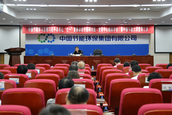 中国节能党委举办学习贯彻习近平总书记“七一”重要讲话精神专题研讨班(党委理论学习中心组联学会)暨中国节能大讲堂第三讲 7月23日,中国节能党委举办学习贯彻习近平总书记“七一”重要讲话精神专题研讨班(党委理论学习中心组联学会)暨中国节能大讲堂第三讲。中央企业党史学习教育第十指导组副组长张铁甲和组员刘晶、尹太兵到会指导,强调要把学习贯彻习近平总书记“七一”重要讲话作为当前一项重要政治任务,作为党史学习教育的核心内容,认真读原文、悟原理,感悟思想伟力;要抓好理论宣讲,采取多种形式,迅速掀起学习宣贯热潮;要深入推进党史学习教育,筹划开展好组织生活会。