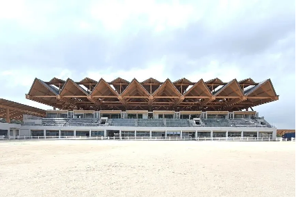 马术场馆屋顶由73000余个、直径20毫米的胶合木螺栓锁住。单榀(双拼)木梁最大长度达96米,木梁跨度66米,最大悬挑20米,系国内最大跨度的木结构体育建筑。
