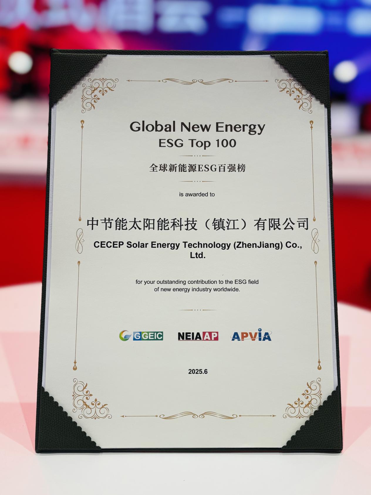 近日,在上海举行的第十八届SNEC光伏展期间,太阳能镇江公司凭借在环境、社会及治理领域的扎实实践与积极成效,成功入选“Global New Energy ESG Top 100全球新能源ESG百强榜”,其可持续发展努力获得国际权威机构高度认可。