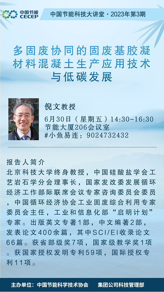 讲座主题:多固废协同的固废基胶凝材料混凝土生产应用技术与低碳发展