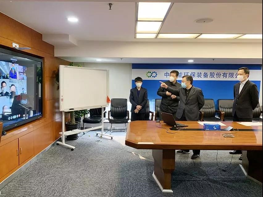 在中环装备视频会议室,集团领导与唐山装备、天融科技、六合天融等公司进行了视频通话。宋鑫强调,各单位要在做好防疫工作的同时,尽快创造条件复工复产,保持生产经营平稳运行。余红辉要求中环装备继续抓深抓细抓严抓实防疫工作,加快复工复产,确保完成各项经营目标。