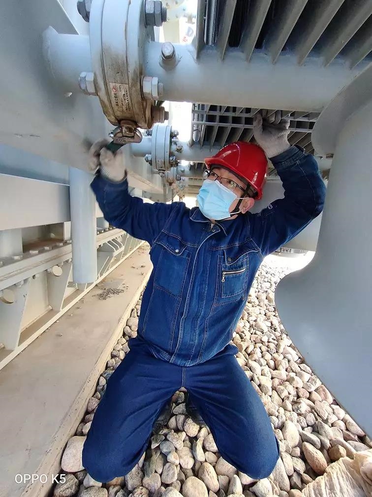 满井风电场站长刘小贺临危受命,放弃陪护住院的女儿,立刻驱车近200公里从老家赶到风场。他不顾奔波的辛苦,随即带领员工和维修厂家工人共同开展抢修。查原因、配备件、做实验,通过全站运行人员的共同努力,终于在下午4点抢修完毕,3号主变压器恢复了运行。此次抢修既最大限度的缩短了故障停运的时间,减少了公司损失,也全力保障了风电场在当前的特殊情况下的安全稳定运行。 “发挥战斗堡垒作用,践行我们的初心!” 疫情突如其来,哈密公司党支部书记、烟墩风电场班组长屈永德,顾不上家中小的8个月、大的才2岁的一双儿女,主动放弃休假,毅然从老家甘肃返回工作岗位,连续奋战在一线长达17天。 1月23日下午3点,烟墩风电场1台风力机出现故障警报,他立即带领检修人员进行抢修。通过登机详细检查,故障点始终未能查到。此时已是深夜10点,天上刮着的鹅毛大雪让荒凉的戈壁变得更加寒冷。考虑到班组人员在户外极寒天气工作多时,为了确保安全,他带领大家返回驻地。经过连夜梳理故障思路,等次日天刚亮,他又带领大家继续登机检排查。最终故障被消除,风力机恢复运行,确保了春节及疫情防控期间电力生产供应保障。