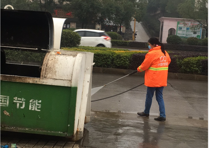 垃圾收集点冲洗作业 2019年11月1日,嘉鱼公司全面接管嘉鱼县城区环卫工作,主要是城区道路清扫保洁、垃圾收集运输转运等工作。结合疫情发展,嘉鱼公司及时加强防控措施:一是每日统计并上报员工身体情况,强调防护并加强宣传督导;二是部署各医院、隔离区的生活垃圾采用专箱、专车、专人清运,东门转运站设立单独站点,作业人员加强防护,加强消杀,杜绝感染风险;三是垃圾清运重心由路段转向社区、小区,应对市民外出减少造成的垃圾分布转移问题,避免积存;四是运输车辆及公厕的日常消杀工作,提升防御等级;五是积极协调采购防护物资,做好后勤保障;六是配合政府工作,为嘉鱼东交通管制点、隔离区办公区域配置垃圾收集容器,调整收运路线,为工作人员生活提供便利。