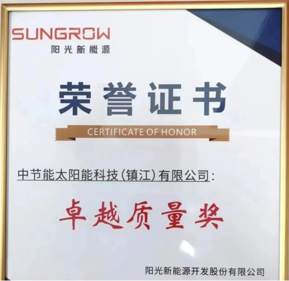 【能力提升年】中节能太阳能镇江公司荣获阳光新能源“卓越质量奖”